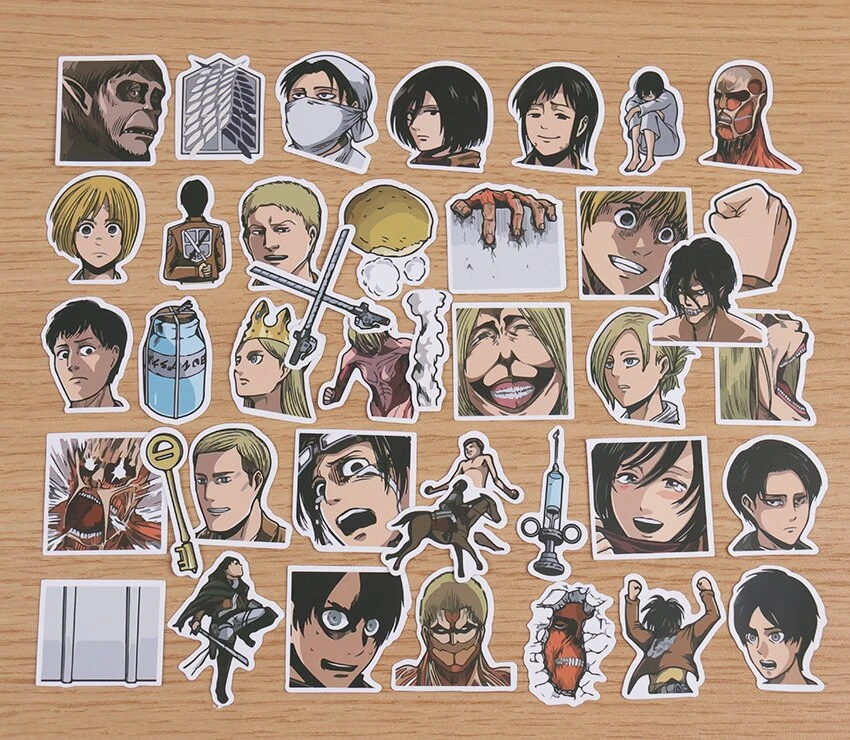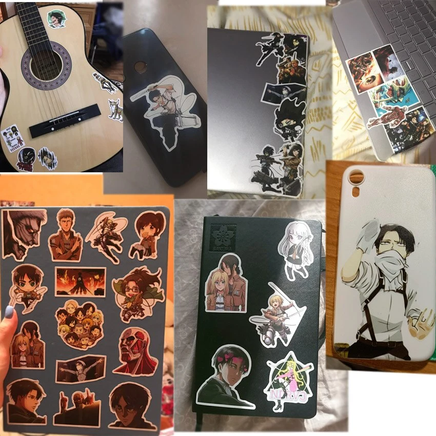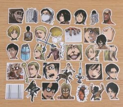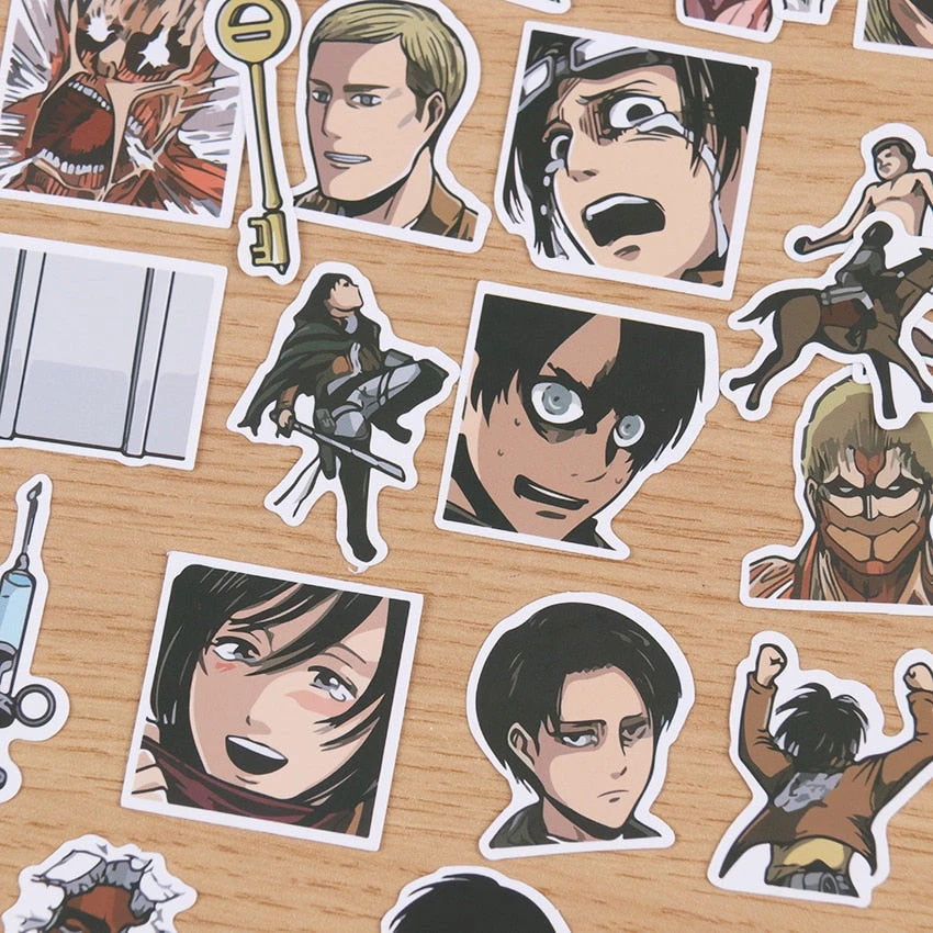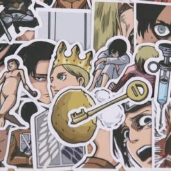 Redécouvre des personnages et objets clés du manga Shingeki no Kyojin à travers ces stickers et customise tes affaires pour les rendre uniques !