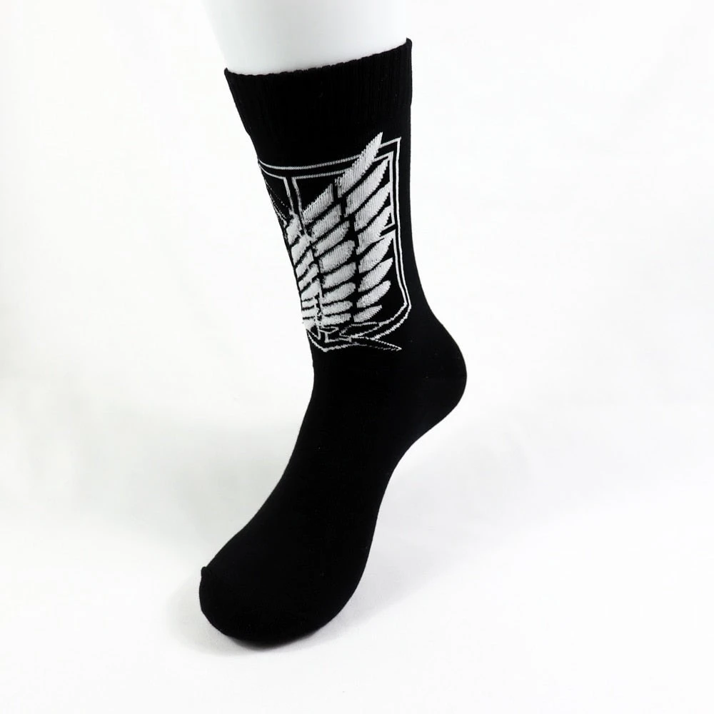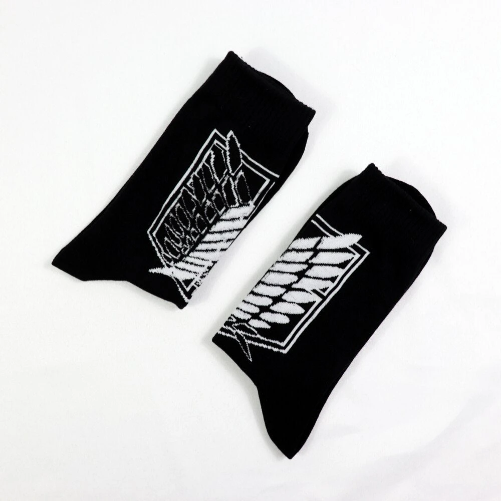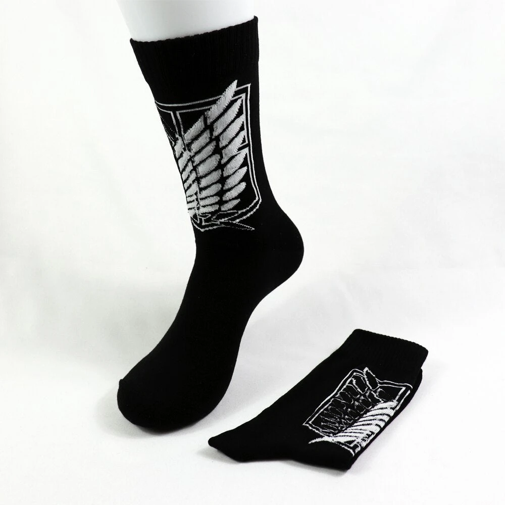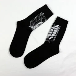 Les chaussettes Attaque des Titans noires : l’accessoire parfait pour afficher votre style otaku tout en restant sobre.