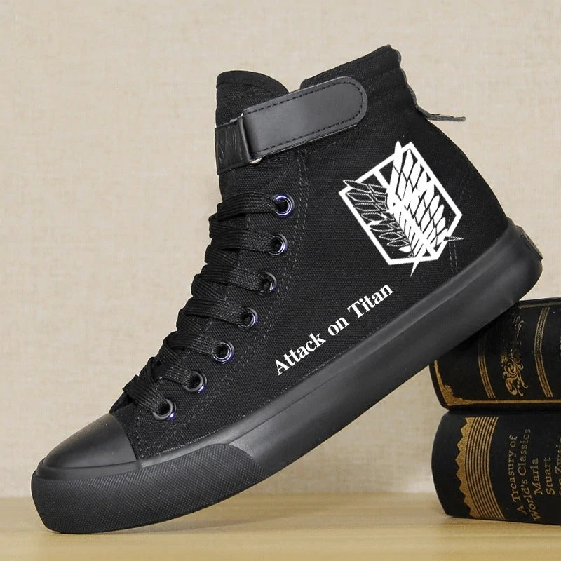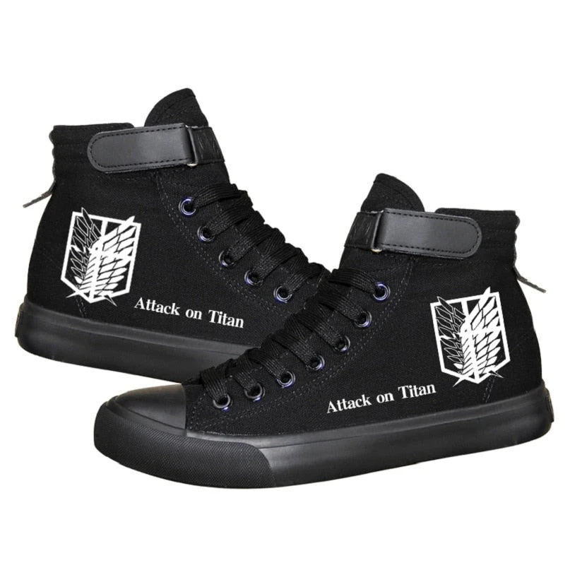 Parcours le monde et affronte l’extĂ©rieur sans crainte grĂące Ă ces chaussures illustrĂ©es du Bataillon d’Exploration ! Ces chaussures tout terrain s’adaptent parfaitement Ă tout type d’environnement. Enfile-les et rejoins Livai Ackerman au sein de son escouade tactique, et dĂ©voue-toi au commandant Erwin Smith !