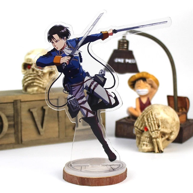 Figurine 2D SNK : Joins à ta collection de figurines Livai Ackerman armé dans une tenue bleue, prêt à trancher une nuque de Titan !