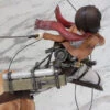 Ici, Livai n’est pas dans l’uniforme habituel du bataillon d’Exploration, mais dans une combinaison rouge, lui donnant un air encore plus dangereux et menaçant. Ses Ă©pĂ©es sont dans les airs et virevoltent aux grĂ©s de ses mouvement vĂ©loces et rapides. Son visage sĂ©rieux montre une grande concentration et une impassibilitĂ© totale face au monstre devant lui !
