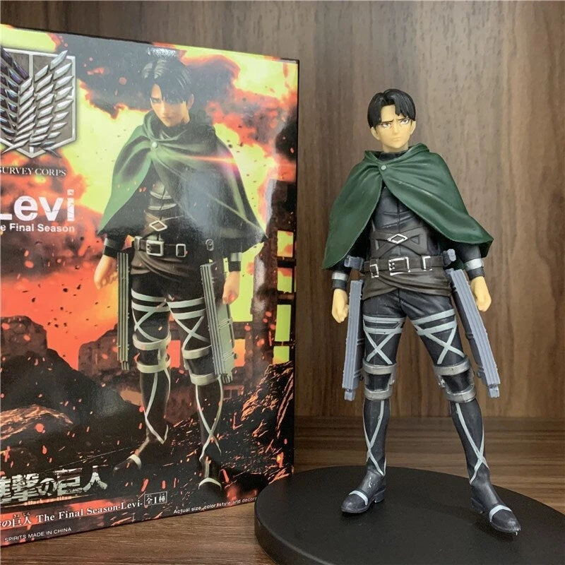 Voici une figurine de Livai Ackerman, reprĂ©sentĂ© comme dans la saison 4 de l’Attaque des Titans.