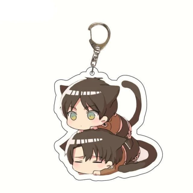 PORTE-CLÉS ATTAQUE DES TITANS : Tu aimes l’univers kawaii, typiquement japonais ? Alors retrouve Eren et Livai dans ce style, ici transformĂ©s en adorabes chats !