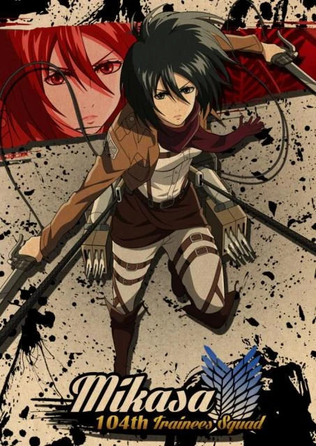 POSTER SNK : Mikasa Ackerman est la recrue la plus douĂ©e de la 104e brigade d’entrainement. Elle finira mĂŞme première lors du classement finale de recrues !