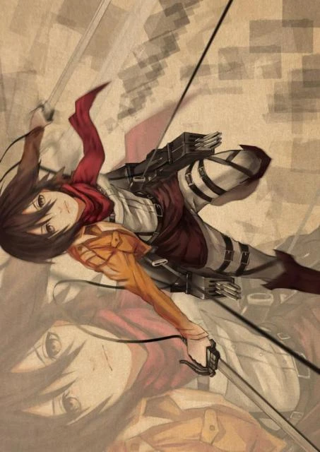 POSTER SNK : Mikasa Ackerman n’Ă©prouve aucune difficultĂ© Ă manier son Ă©quipement tridimensionnel et ainsi voler dans les airs !