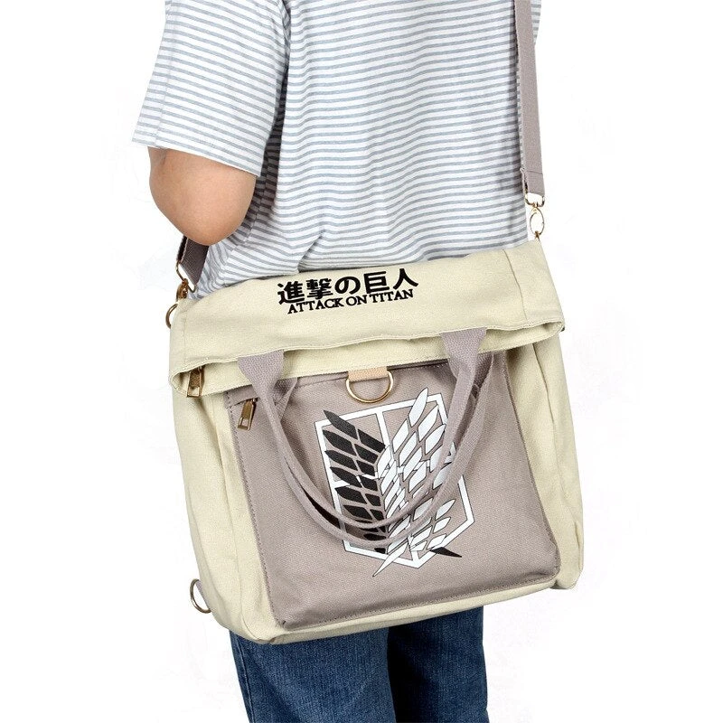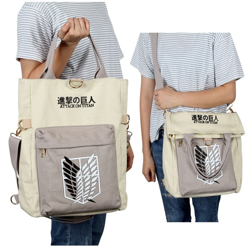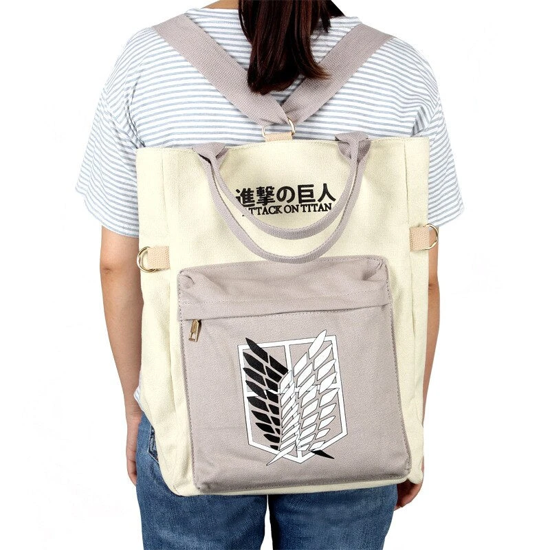 SAC Attaque des Titans : Utilise ce sac Ă ta guise : en sac Ă dos, sac Ă main, en le portant Ă l’Ă©paule. Allie passion et praticitĂ© !