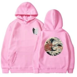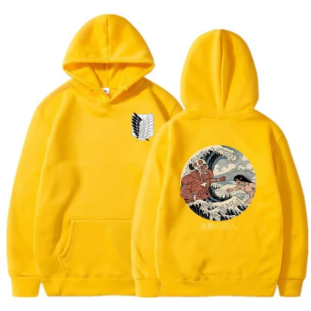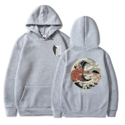 ce sweat possède le logo du batailon d’exploration Ă l’avant, et une illustration d’un grand combat entre le titan assaillant et le titan colossal au dos !