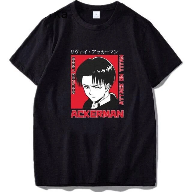 T-SHIRT SNK : Rejoins la caste des Ackermans en revĂŞtissant ce t-shirt Ă l’image du plus emblĂ©matique de la famille, livai Ackerman !