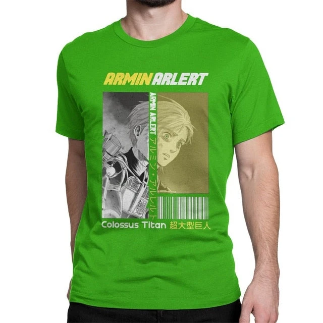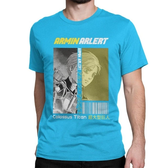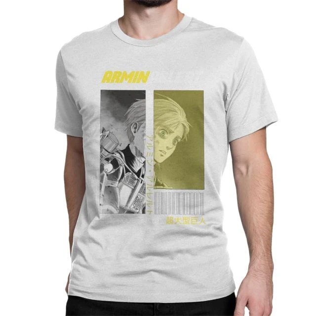 T-SHIRT SNK : Tu aimes le personnage d’Armin, pour son cĂ´tĂ© rĂ©flĂ©chi et humble ? Porte son t-shirt, avec une illustration graphique Ă son effigie !