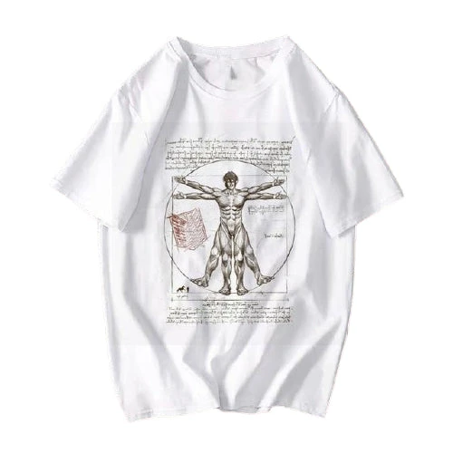 Vous aimez l’originalitĂ© ? Portez Eren Jaeger sous la forme du Titan Assaillant sous les dimensions de LĂ©onard de Vinci avec ce T-shirt Attaque des Titans.