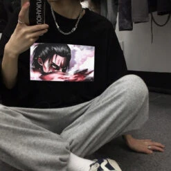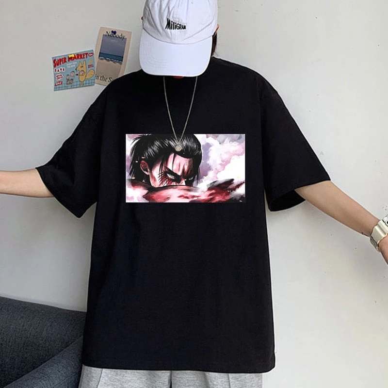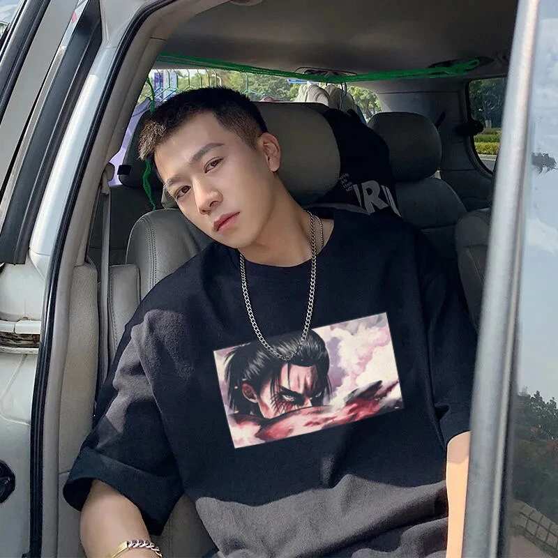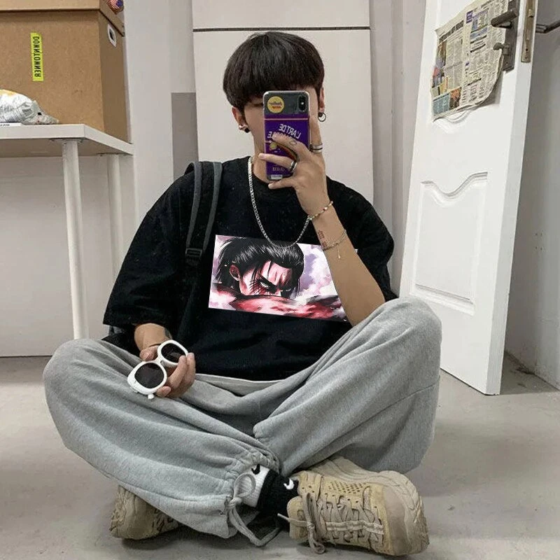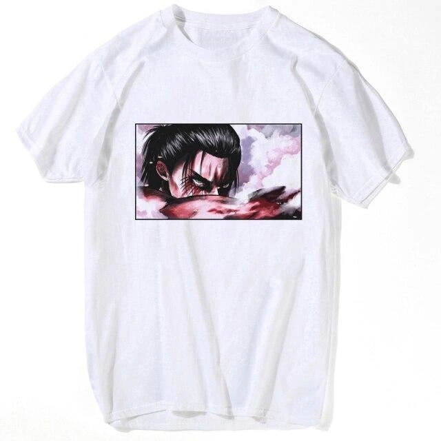 Rejoins le mouvement streetwear, et choisis ce t-shirt illustrĂ© d’Eren Yeager, faisant penser Ă©galement Ă une peinture de la Renaissance !