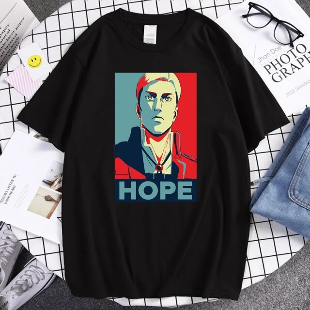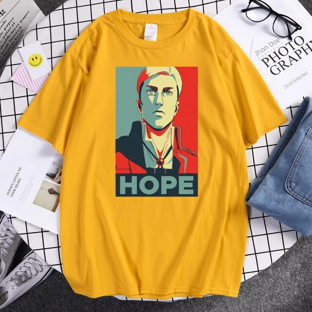 T-SHIRT SNK : Erwin Smith est l’espoir de l’HumanitĂ©, ce grand commandant veut mener les troupes du bataillon d’exploration Ă la victoire coĂ»te que coĂ»te !
