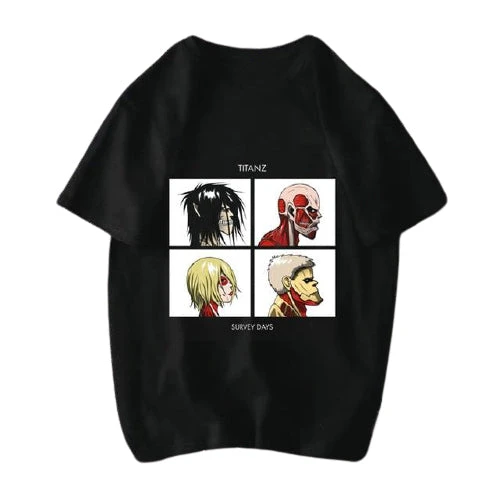 Ce T-shirt l’Attaque des Titans illustre les 4 Titans primordiaux des premières saisons du manga. Annie Leonhart en Titan fĂ©minin, Eren Jaeger en Titan assaillant, Bertolt Hoover en Titan colossal et Reiner Braun en Titan cuirassĂ©.