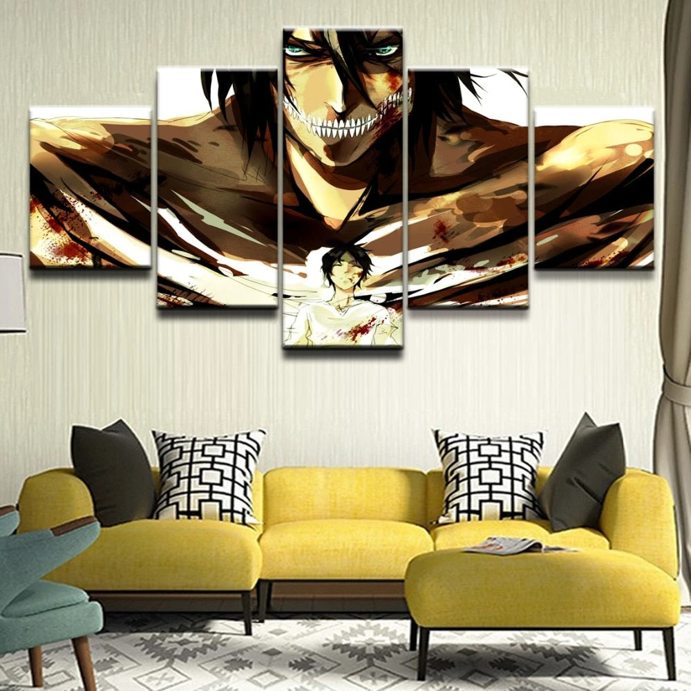 Eren Jaeger est votre personnage préféré de la saga Shingeki no Kyojin ? Affichez le sous sa forme du Titan Assaillant avec ce Tableau Attaque des Titans.