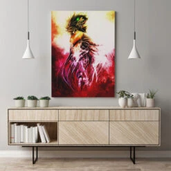 Tableau Attaque des Titans : DĂ©core ta pièce d’une scène impresionnante entre Eren et son Titan, inspirĂ©e du cĂ©lèbre manga japonais