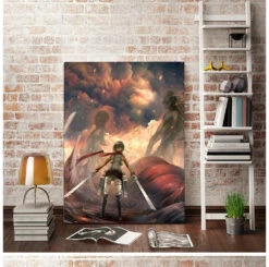 TABLEAU ATTAQUE DES TITANS : Lorsqu’on s’aventure hors des Murs, on est jamais sĂ»rs de ce qui s’y passera… Retrouve Mikasa, au milieu d’une attaque de Titans sur cette toile !