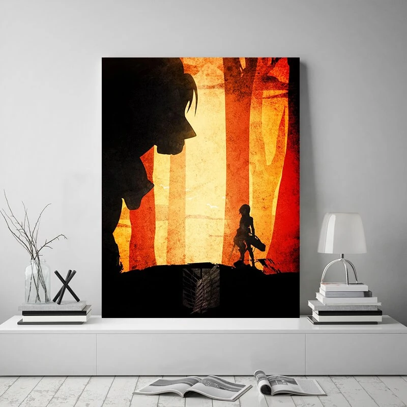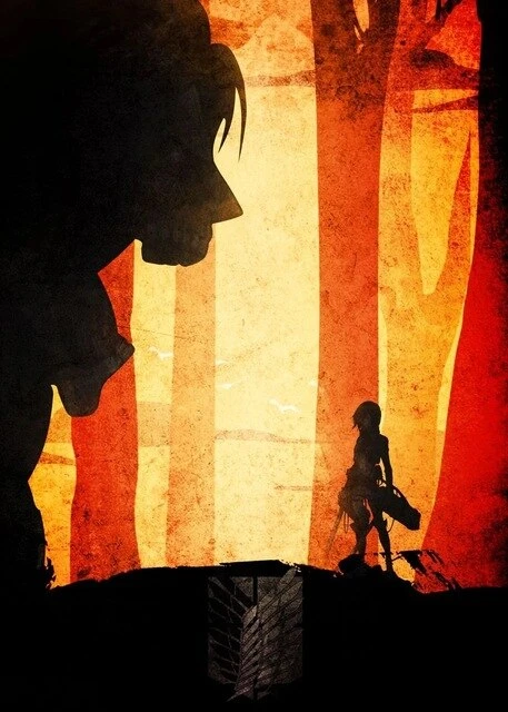 Tableau Attaque des Titans : Mikasa, confiante, n’aprĂ©hende pas l’Ă©norme bouche du Titan, prĂŞt Ă se jeter sur elle ! Immortalise ce moment Ă travers ce tableau graphique stylisĂ©
