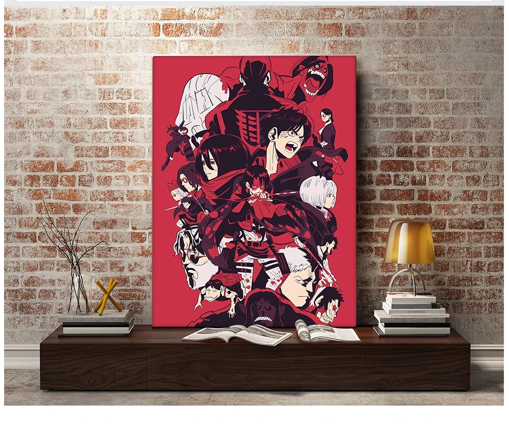 TABLEAU ATTAQUE DES TITANS : Créé une ambiance qui correspond à ta passion grâce à ce tabeau graphique représentant les personnages du manga japonais !