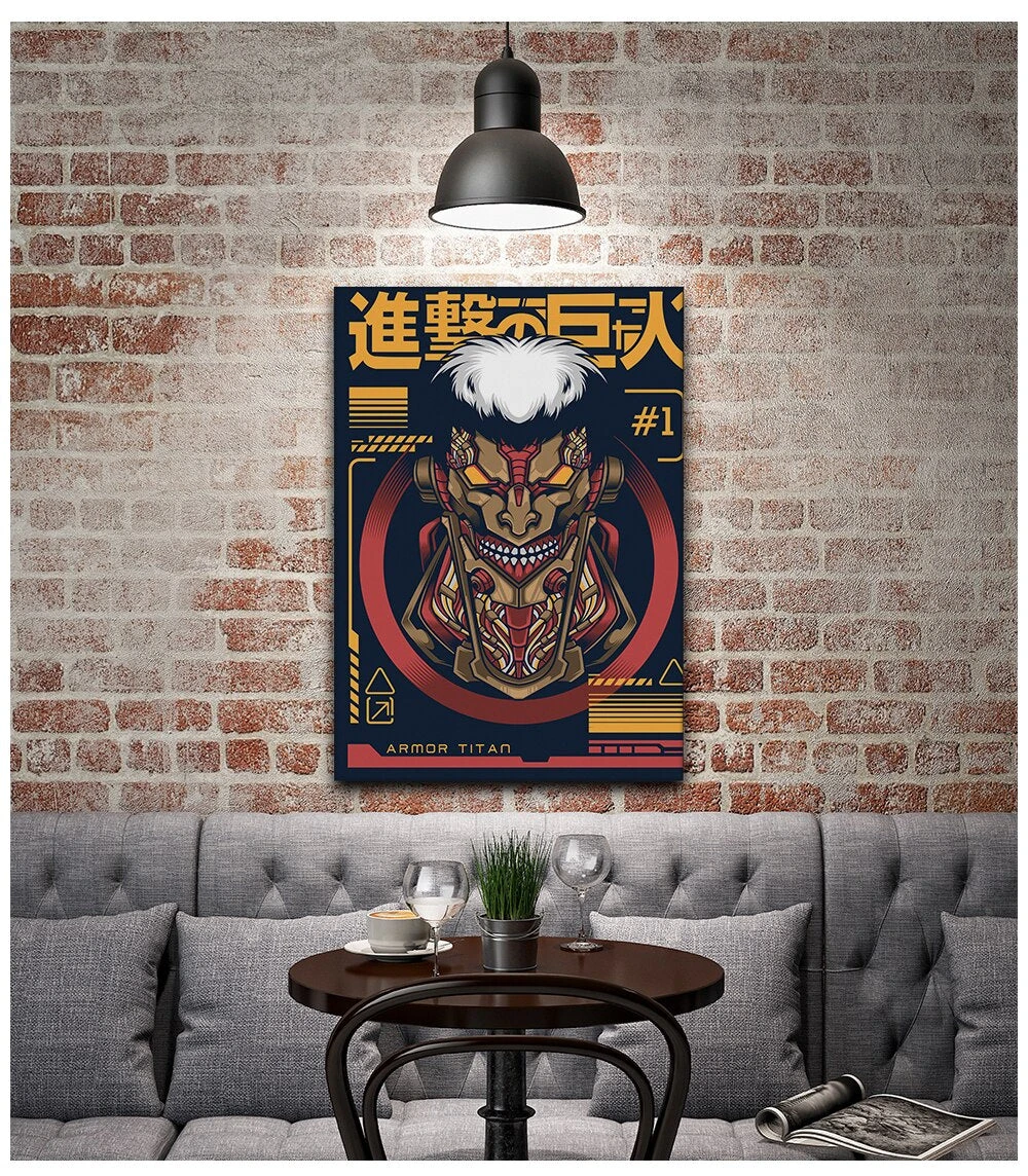 TABLEAU ATTAQUE DES TITANS : Habille des murs d’une dĂ©coration unique, avec cette toile reprĂ©sentant le Titan CuirassĂ© de manière stylisĂ©e !