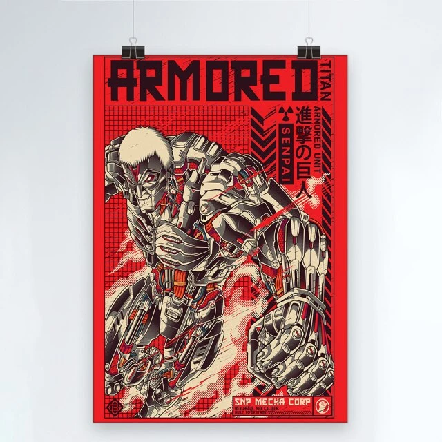 TABLEAU ATTAQUE DES TITANS : Compose une décoration à ton image grâce à notre tableau du Titan Cuirassé au style rétro