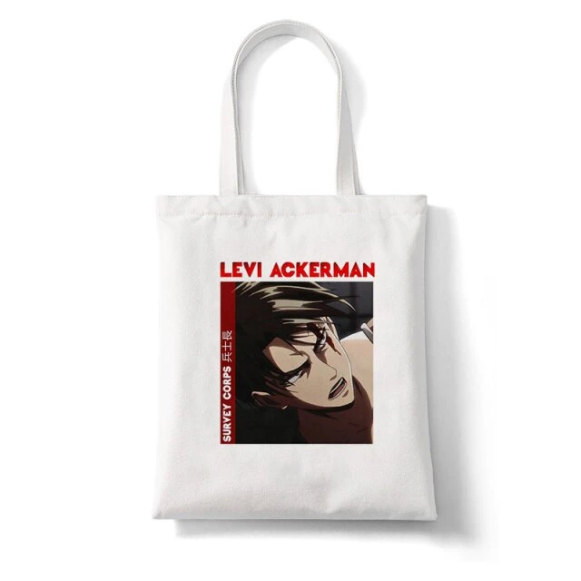 TOTE BAG ATTAQUE DES TITANS : Invite Livai Ackerman dans tes parcours quotidiens avec ce tote bag en couleur !