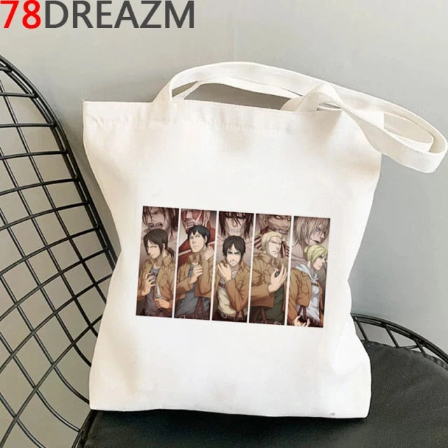 Retrouve les personnages clés du manga ainsi que leur titans sur ce tote bag Attaque des Titans !