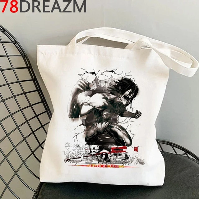 Tote bag Attaque des Titans : Lors de la saison 1, Eren acquiert le pouvoir des Titans, et sera nommĂ© le « Titan Assaillant ». Eren utilise ce pouvoir pour donner Ă l’HumanitĂ© un avantage pour vaincre ses ennemis, dans l’espoir de terrasser tous les Titans