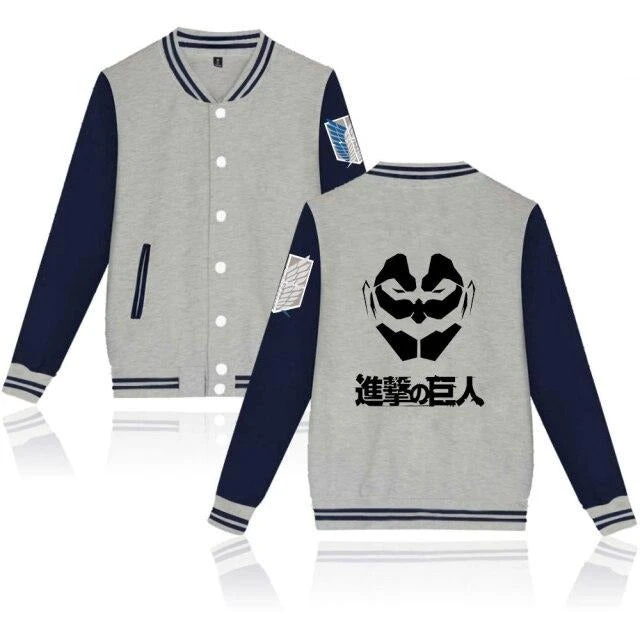VESTE Baseball ATTAQUE DES TITANS : Adopte un style de dur à cruire avec avette veste baseball ilustrée du Titan Cuirassé !