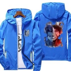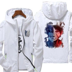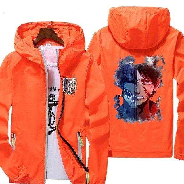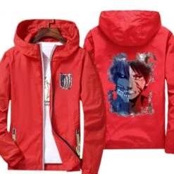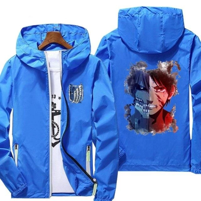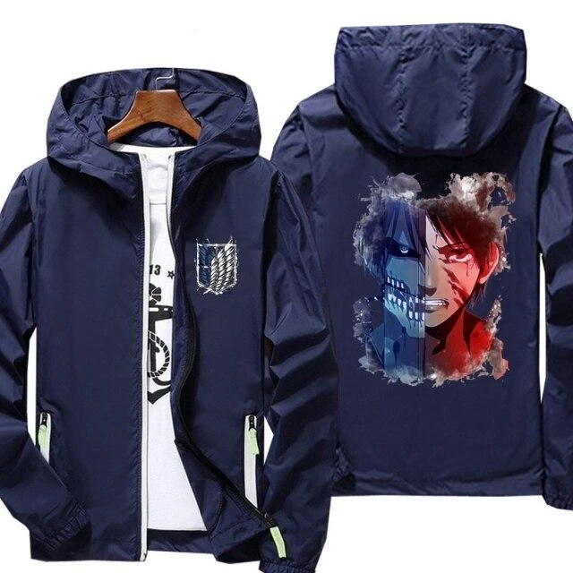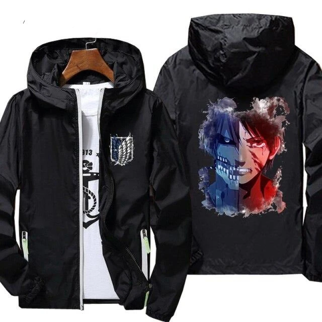 VESTE COUPE-VENT ATTAQUE DES TITANS : VAS DEHORS MĂŠME PAR TEMPS PLUVIEUX AVEC CETTE VESTE ILLUSTRÉE DES DEUX FACETTES D’EREN !